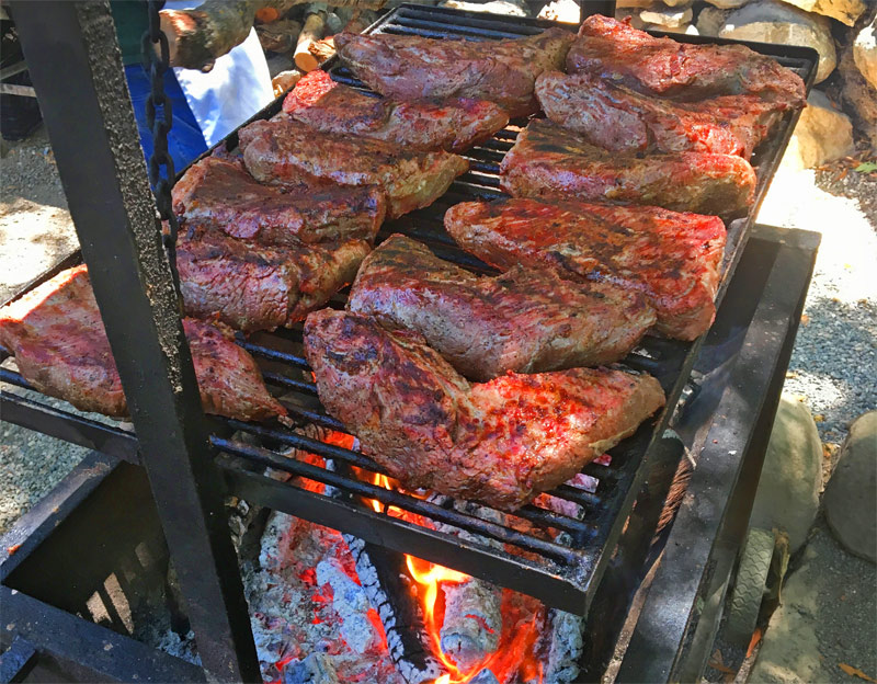 Our outdoor barbeque begins at 11:00 a.m. on Saturday and Sunday and concludes around ends at 5:00 p.m. The walk-up tri-tip station is located in the lower parking area next to the Treasures and Trash gift store. You pay for your tri-tip sandwiches right in front of the bar-b-q station. Please note that dogs are not allowed as we must comply with health code requirements for cooking outdoors.