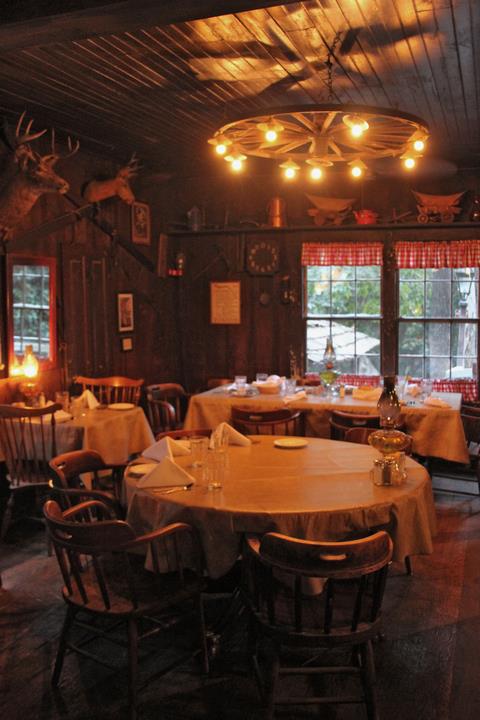 The buggy wheel light in the Long Room came from Tony’s Log Cabin.